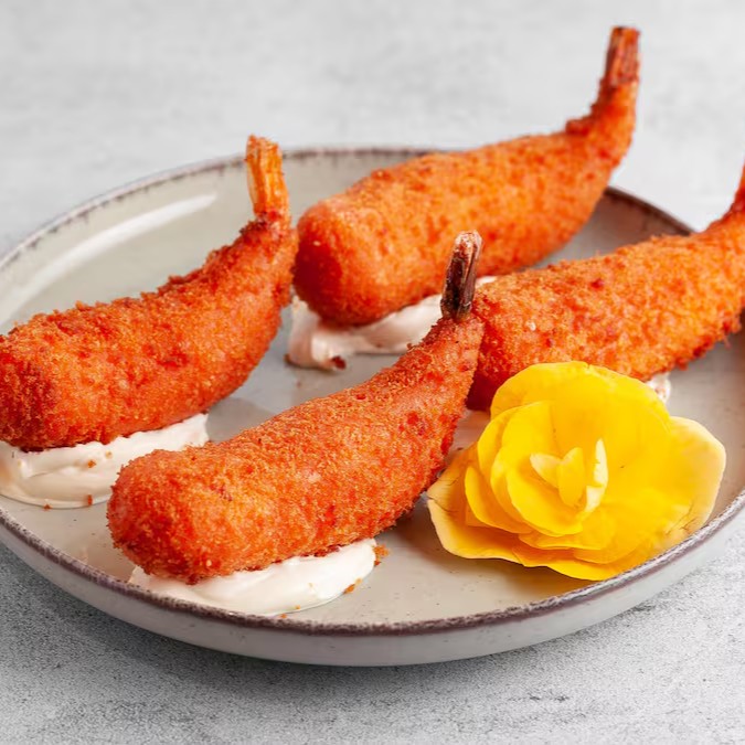 Crocante e delicioso: Camarões frescos, envoltos em Catupiry, empanados na farinha panko.