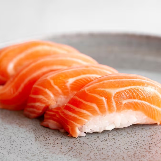 Bolinho de arroz com fatia de peixe por cima