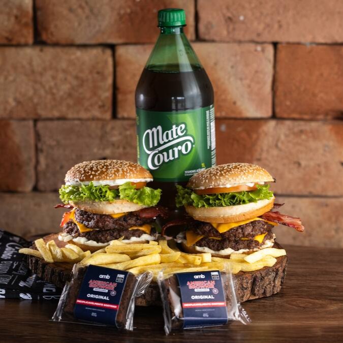 2 tauros burguer, 1 Mate couro 1 litro e 2 brownie.