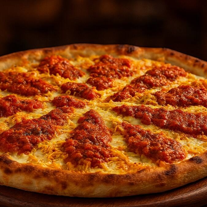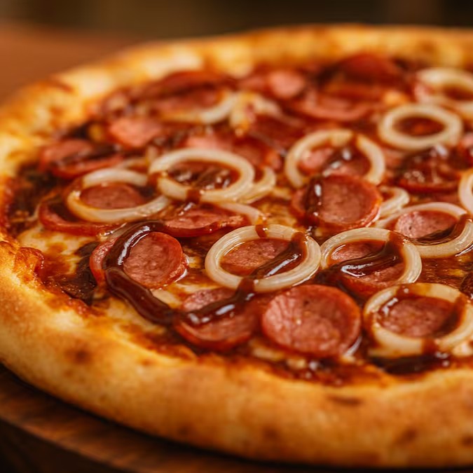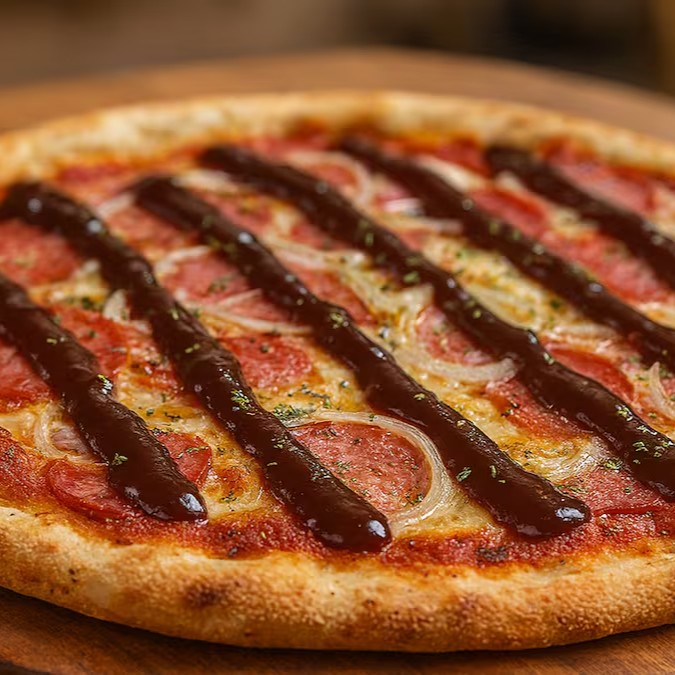 Molho de tomate suculento, fatias generosas de calabresa defumada, cebola fresquinha, um toque especial de molho barbecue e orégano aromático. Uma combinação irresistível que vai conquistar seu paladar desde a primeira mordida!