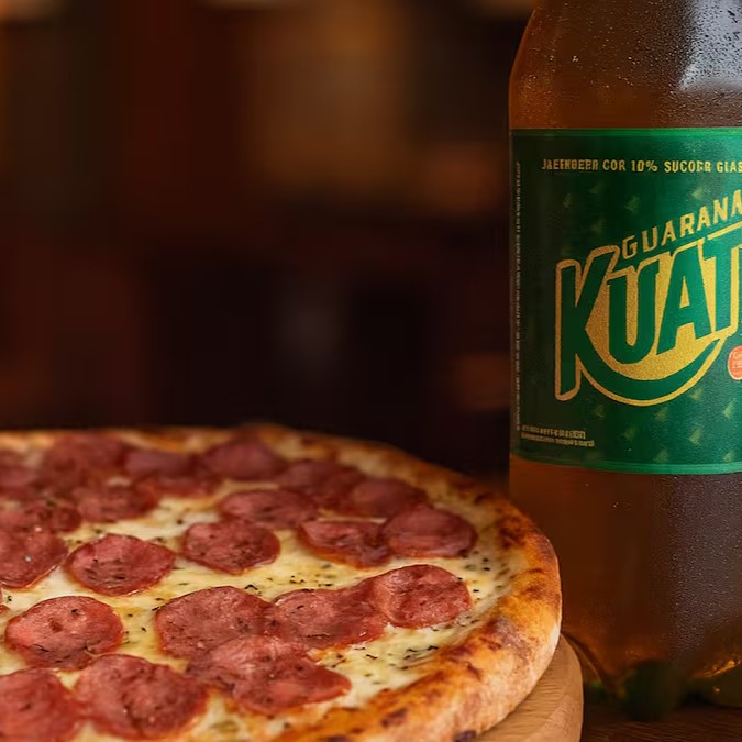 Pizza gigante de calabresa (35 cm) com mussarela derretida, calabresa defumada fatiada e orégano aromático. Acompanha Guaraná Kuat 2 litros bem gelado. Aproveite: 25% Off por tempo limitado!