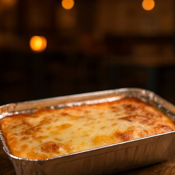 Uma deliciosa massa cozida no ponto ideal, intercalada com camadas generosas de molho bolonhesa encorpado, preparado com carne moída suculenta e temperos especiais. Entre cada camada, fatias macias de presunto e queijo derretido criam uma combinação cremosa e irresistível, gratinada ao forno até atingir um dourado perfeito.