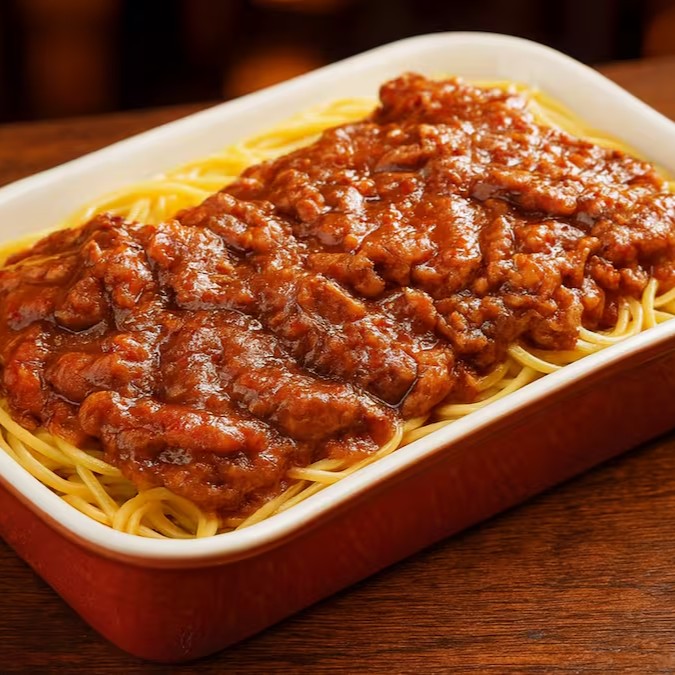 Espaguete cozido no ponto perfeito, coberto por um delicioso molho à bolonhesa feito com carne moída suculenta, tomates frescos e temperos selecionados. Finalizado com uma generosa camada de queijo mussarela derretido e gratinado ao forno até ficar levemente dourado, trazendo aroma irresistível e sabor marcante.