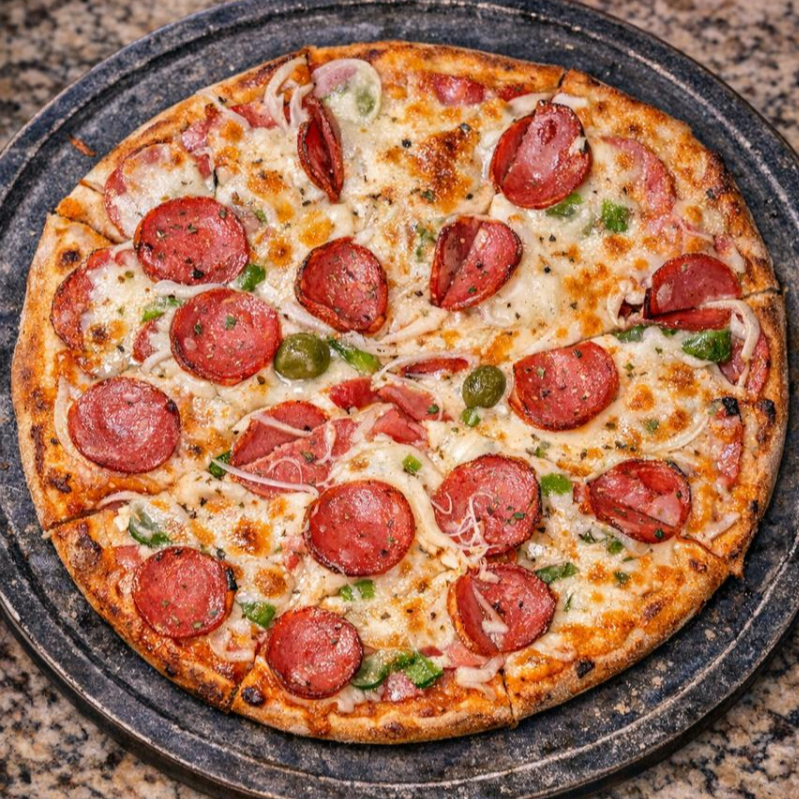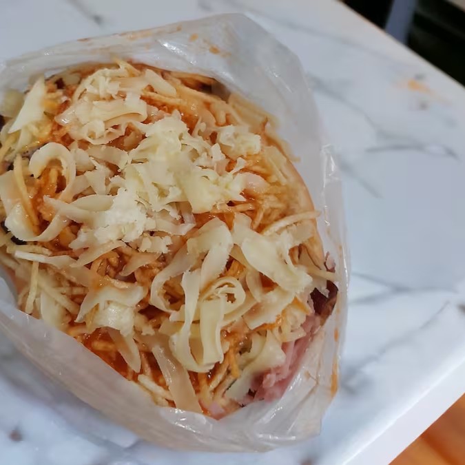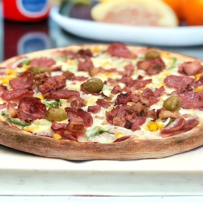 (Peso total -+ 1kg) 400g de espaguete ,molho a bolonhesa ,presunto, ovo, bacon e mussarela.