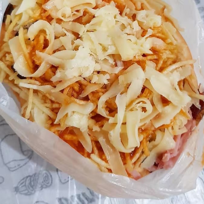 400g batata fast food, bacon, calabresa , cheddar e mussarela.