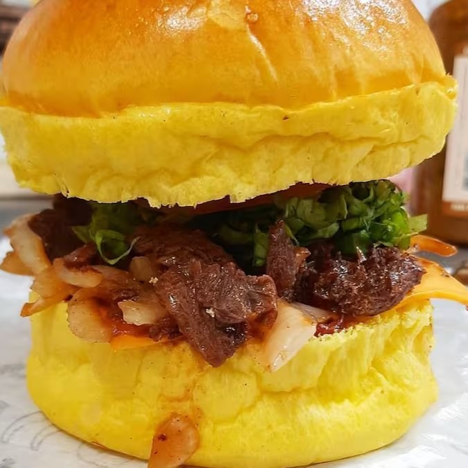 Deguste nosso excepcional 'Pop Quarteirão', um prato da categoria 'Sanduíches Artesanais'. Ele é composto por um suculento hambúrguer bovino de 120g, cuidadosamente acomodado entre duas fatias de pão tostado na manteiga. É complementado com uma generosa porção de dois queijos cheddar derretidos, que adicionam uma textura cremosa ao conjunto. Acompanhado de picles e cebola, que fornecem um toque crocante e contrastante. A combinação é harmonizada com ketchup e mostarda, adicionando uma nota adocicada e picante. O prato ainda acompanha e um refrescante refresco de 200ml para completar essa maravilhosa experiência gastronômica.