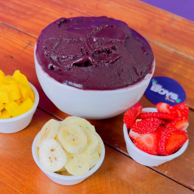 Delicioso Açaí Gourmet 500ml com os deliciosos acréscimos de morango, manga e banana! (Acréscimos vão separados)
