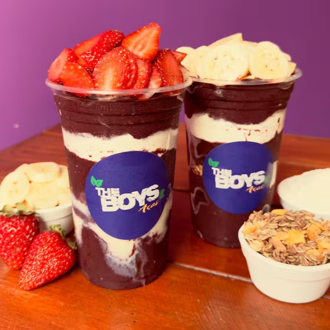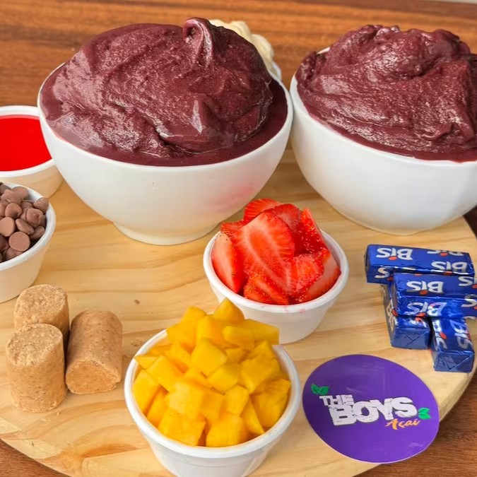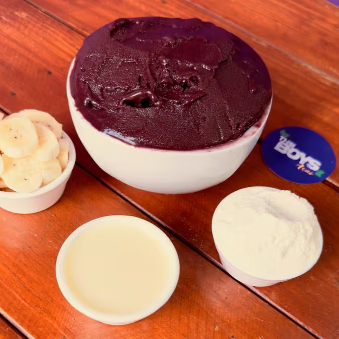 2 deliciosos açaís gourmet de 750ml, mais 8 acompanhamentos de primeira qualidade. Incrivelmente saboroso!