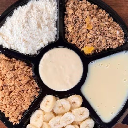 Nossa deliciosa roleta de açaí com os seguintes acréscimos: Granola, Banana, Leite em pó, Leite Condensado, Paçoca e nosso delicioso creme Ninho no centro!