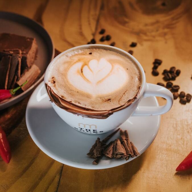Chocolate e pimenta em um cappuccino surpreendente.