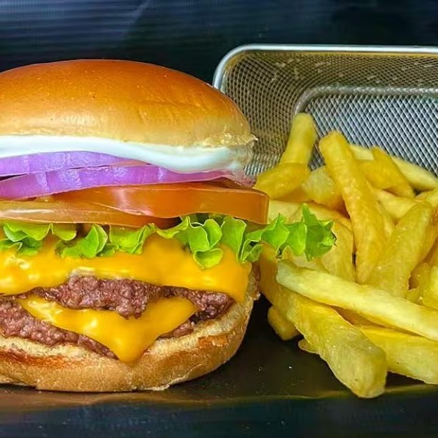 Pão de brioche, blend de 160g, queijo cheddar, bacon em tiras, catupiry cremoso, maionese defumada. Acompanha fritas.
