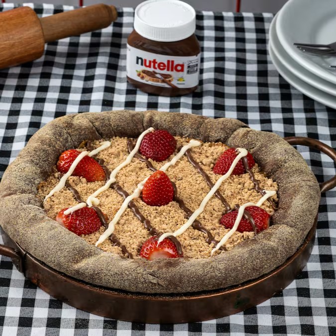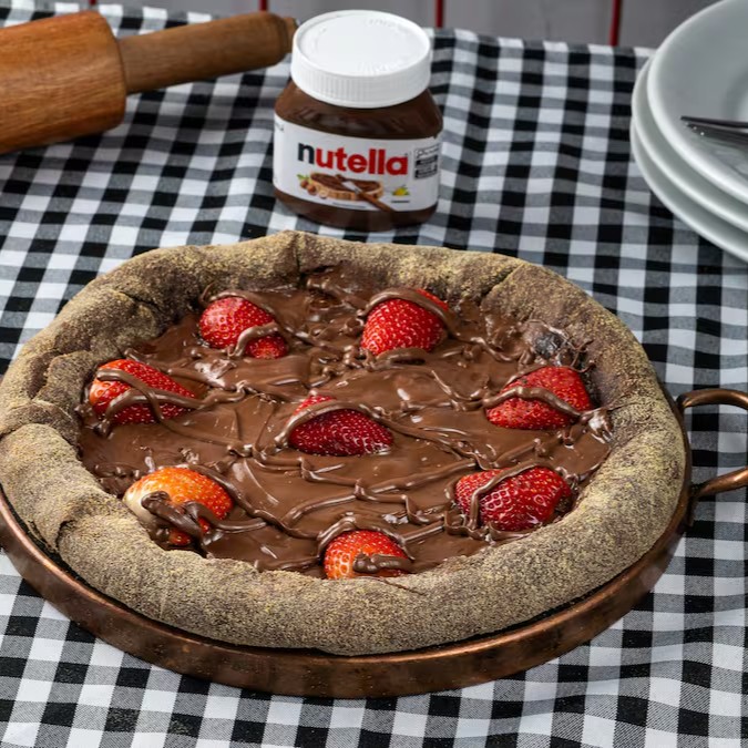 Massa de Cacau com Borda Recheada de Chocolate com Avelã, Muita Nutella e Morango