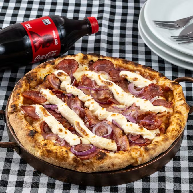 Pizza 8 Fatias Gigante (2 Sabores) + Coca Cola 2l