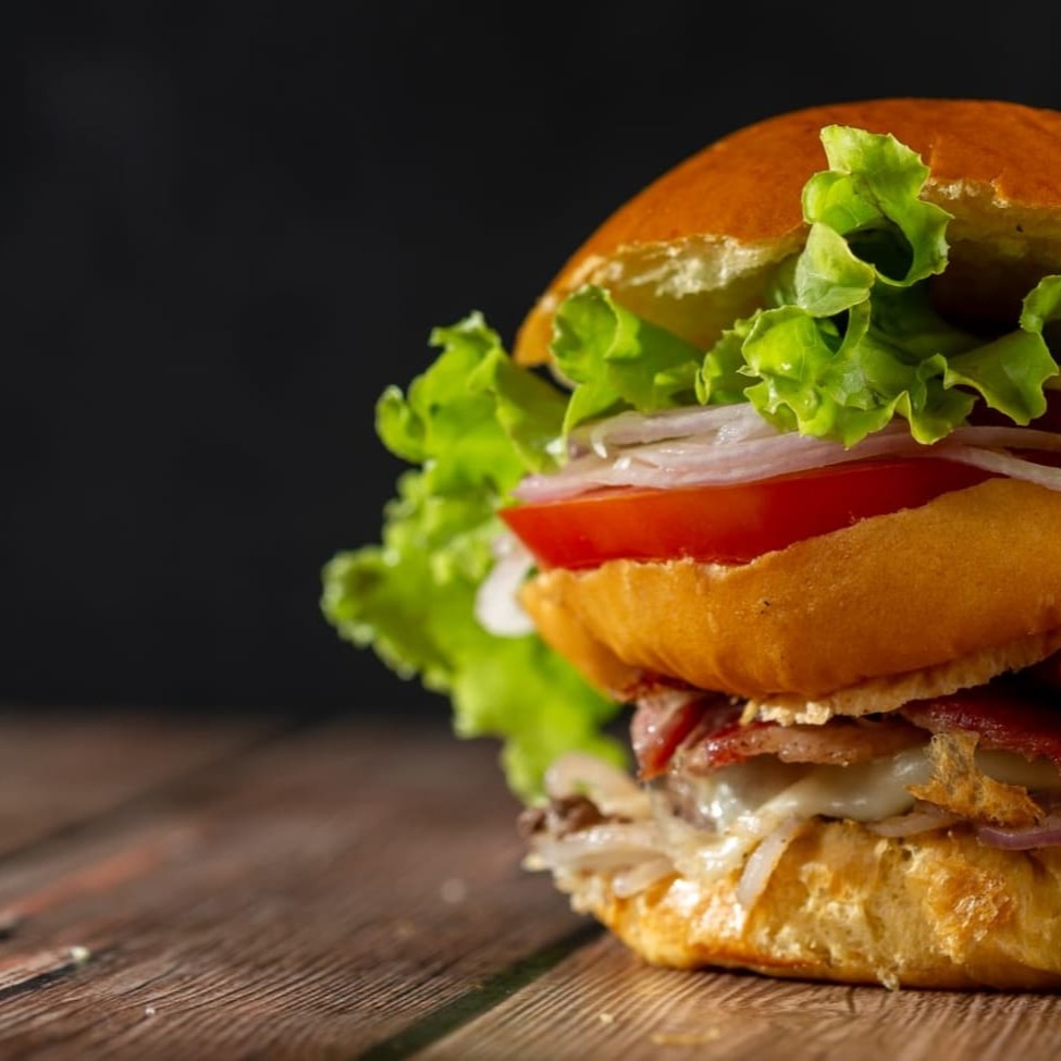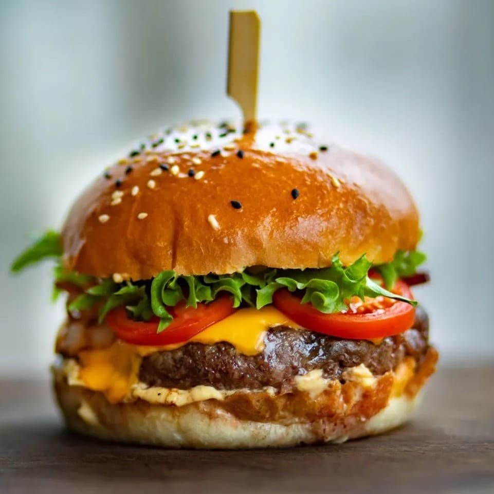 Pão, hambúrguer artesanal 120g, bacon, presunto, ovo, mussarela, cheddar, alface e tomate. Tudo que você ama em um só lanche.