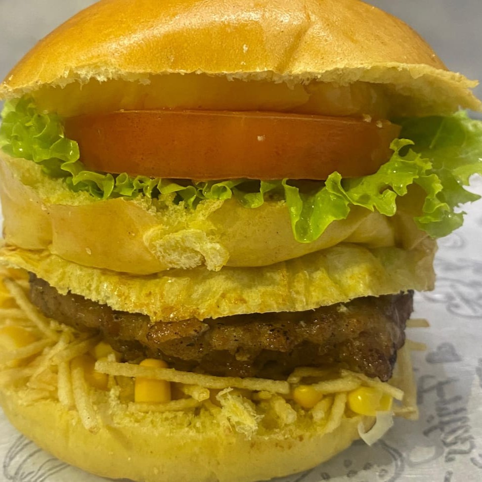 Pão, hambúrguer artesanal 120g, batata palha, milho, alface e tomate. Um clássico irresistível com ingredientes frescos e saborosos.