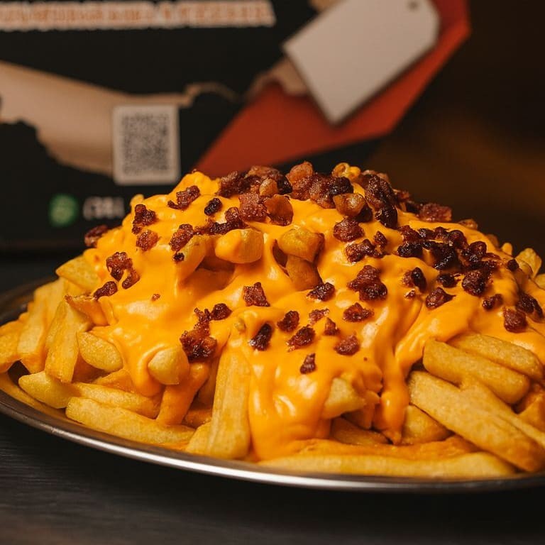 Batatas fritas crocantes, mergulhadas em um queijo cheddar cremoso e cobertas com cubos crocante de bacon. Uma explosão de sabores em cada garfada!