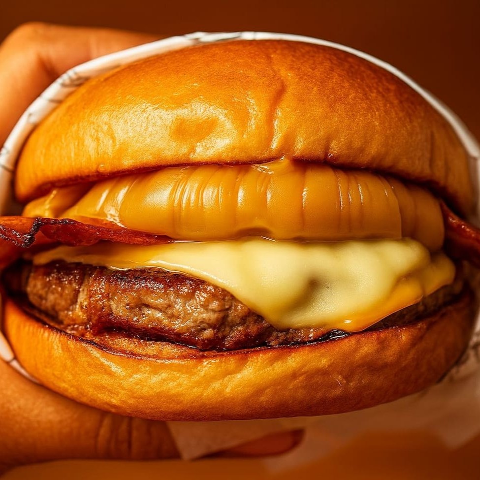 Pão brioche levemente tostado, recheado com 150g de carnes suculentas e seis camadas de cheddar derretido, finalizado com maionese grill cremosa.