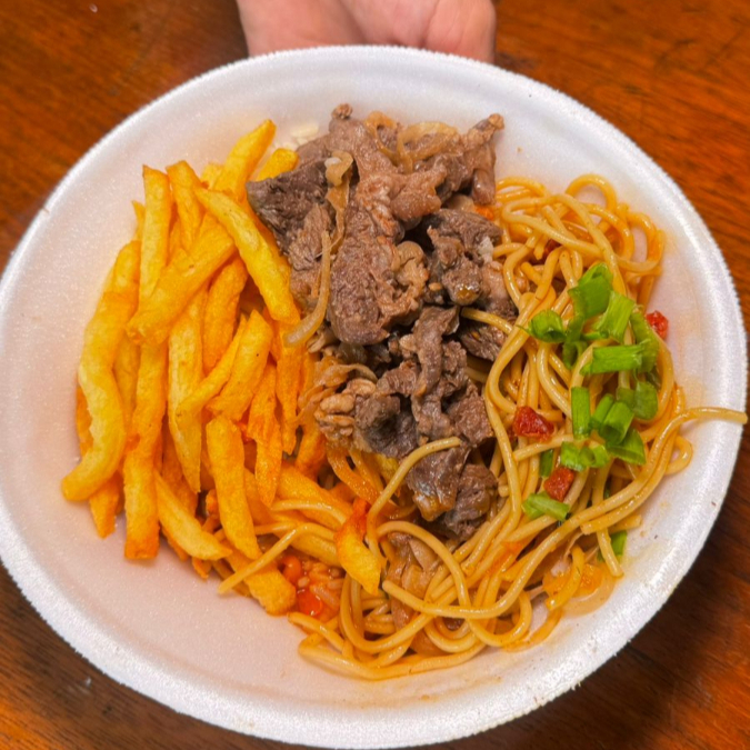 ARROZ , FEIJÃO COMUM , MACARRÃO ALHO OLÉO BACON E BATATA FRITA