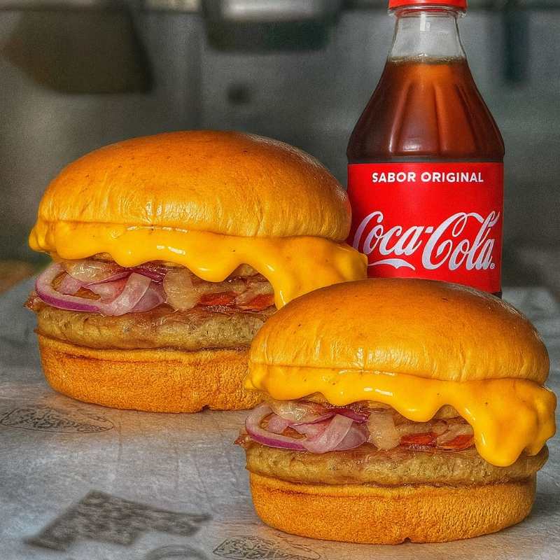 Combo Duplo Cheddar + Coca 600ml 2x ( Hamburguer Cuba ) Duplo com duas carnes de 90g, bacon em fatias, cheddar cremoso, cebola roxa e pão brioche + 1 Coca-Cola 600ml bem gelada. Perfeito pra dividir