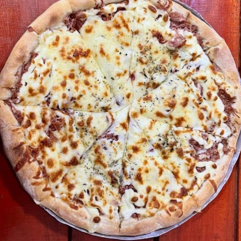 Extraordinária pizza de carne seca com um cremoso e delicioso Catupiry. Mussarela, carne seca desfiada, delicioso e cremoso Catupiry e orégano.