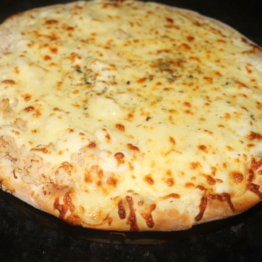 Essa combinação vai com muiitoooo queijo, derrete na boca e deixa uma mistura de prazer. De um lado frango desfiado suculento, Catupiry, mussarela e orégano e do outro provolone, parmesão, Catupiry e muita mussarela.