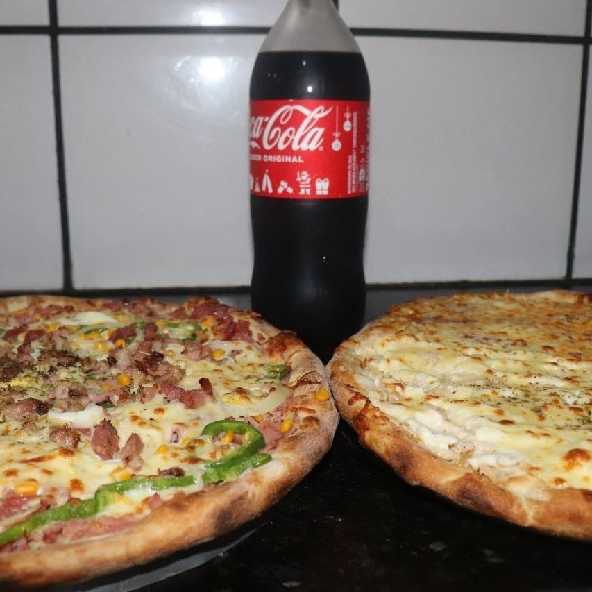 Esse combo é imperdível, para saborear com os amigos e família. 2 pizzas Famílias 12 fatias (40cm), com sabor que desejar + 1 Coca-Cola de 2 litros bem gelada.