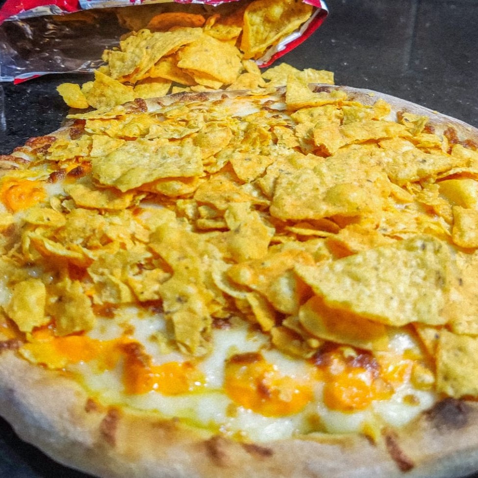 Essa é literalmente com Doritos! Já provou? Sensacional esse sabor, com mussarela, Catupiry, cheddar e Doritos. Essa pizza fica extraordinária.