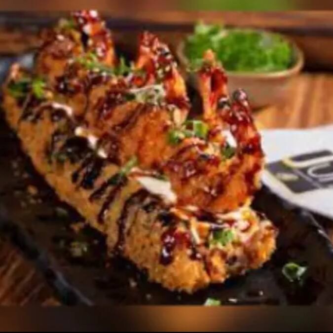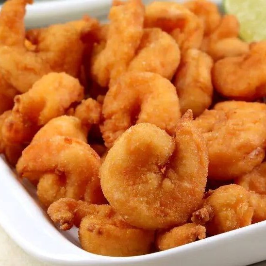 Um deliciosa porção em modo alacarte, camarão fresco empanado com um sabor irresistivel