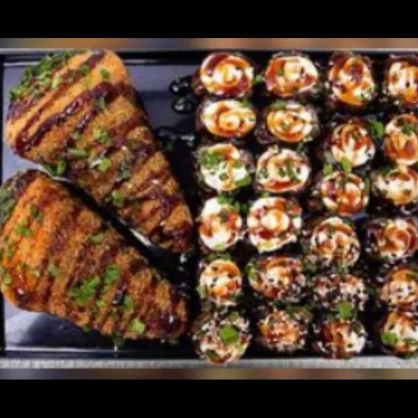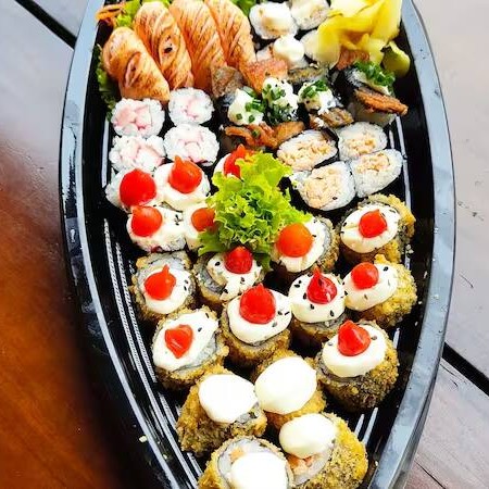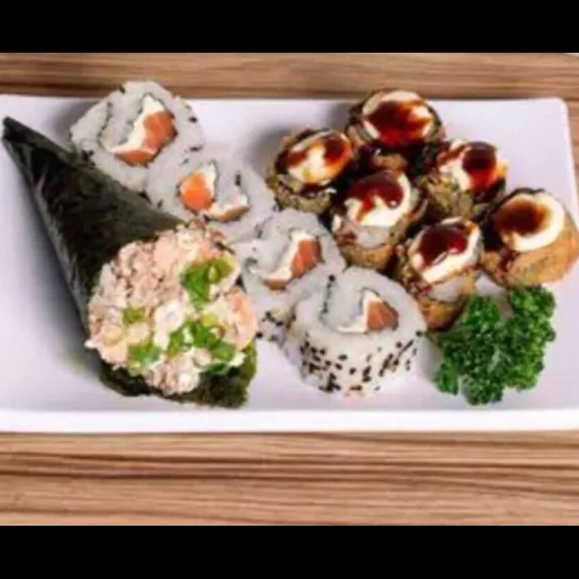 10 maki grelhado, 5 sushi skin,5 sushi kani, 10 hot filadelphia com doritos