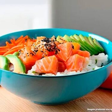 Base Arroz de Sushi, 120 Gramas De Salmão em cubos . Os demais acrecimos devem ser selecionados pelo cliente. Acompanha 01 hashi (palito) e shoyo (molho salgado).