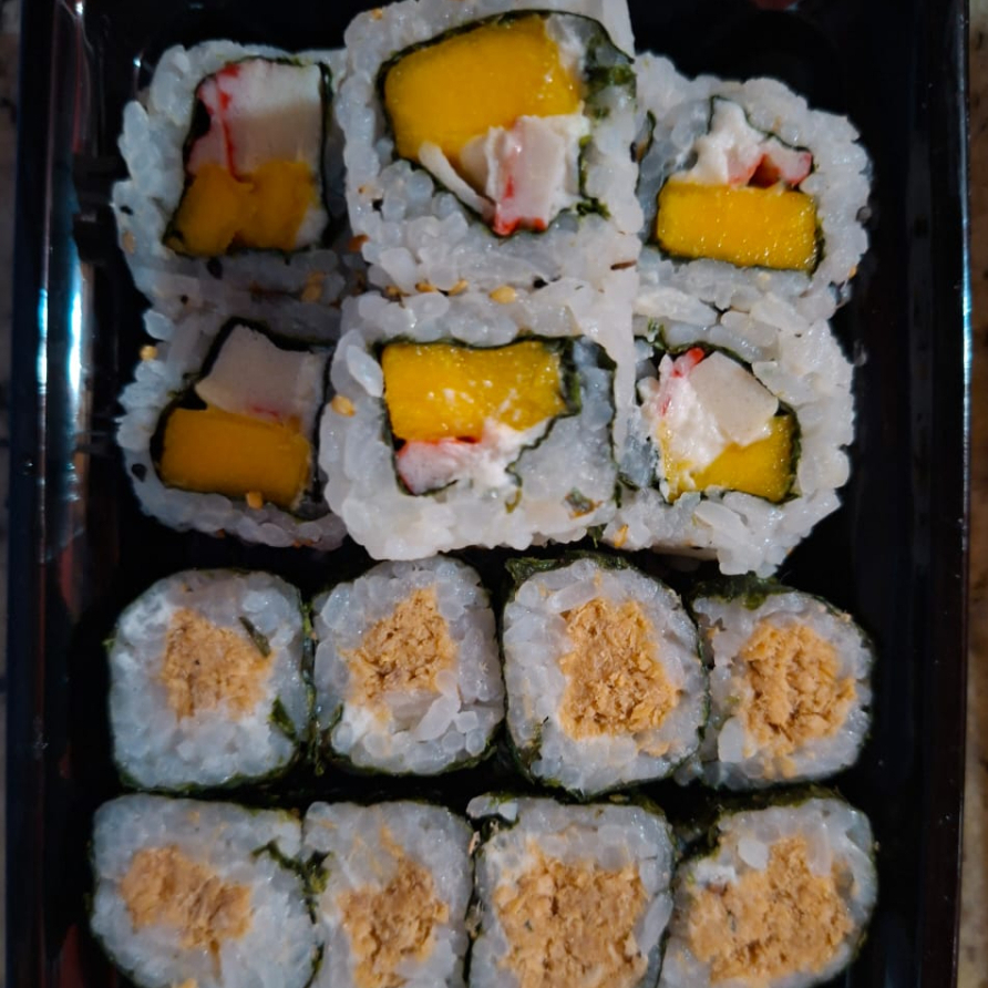 08 maki de salmão grelhado e 08 uramaki Califórnia