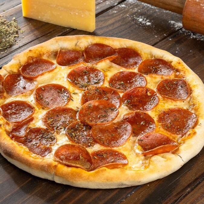 Massa Artesanal, Molho especial, muçarela cremosa, pepperoni gourmet e um leve toque de orégano.