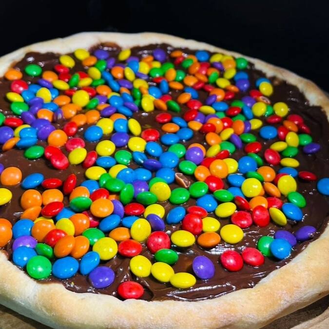 Uma deliciosa pizza doce com massa artesanal leve e macia, coberta com creme de leite suave e uma generosa camada de chocolate gourmet derretido. Finalizada com M&M’s crocantes e coloridos, garantindo uma experiência irresistível de sabor e textura em cada mordida!