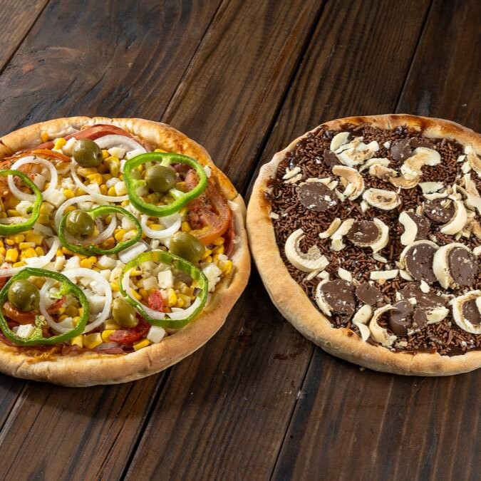 1 Pizza 8 Fatias 2 sabores Meio a meio