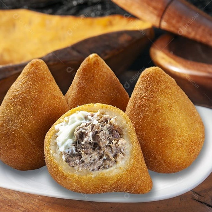 Coxinha De Pernil, Aquela Crocancia Por Fora E Bem Suculento Por Dentro, Com Um Toque Especial Cremoso De Catupiry, Uma Explosão Completa De Sabores. Venha Se Deliciar !!!