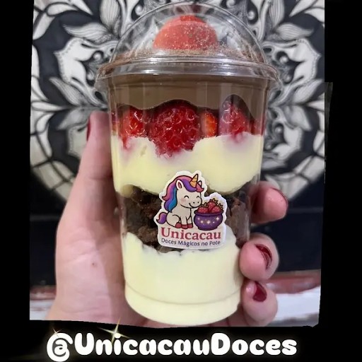 Descubra um universo de sabores com o nosso irresistível Pote Mágico de Brownie! Uma combinação envolvente que desperta todos os sentidos: começamos com um brownie fofinho e molhadinho, seguido por um creme de Ninho delicadamente cremoso. Em seguida, uma camada surpreendente de morango fresco, trazendo um toque frutado e equilibrando a doçura com leve acidez. Depois, vem o creme de avelã, trazendo aquele sabor marcante que conquista à primeira colherada, e mais uma camada de brownie para intensificar a experiência. Finalizamos com uma generosa cobertura de Ovomaltine, garantindo crocância e sabor até o fim. Cada colher é um convite ao prazer — perfeito para qualquer momento do Dia ou para transformar o Dia de alguém especial. A verdadeira magia do sabor agora vem com um toque de morango!