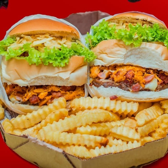 Pão De Hamburguer Fofinho De Qualidade Com 1 Hamburguer De 90g Suculento,Queijo Que Derrete Na Boca ,Bacon Premim Pra Se Deliciar E Mais Frango Desfiado Com Calabresa Curada , Com Aquele Catupiry De Qualidade, Alface Crocante E Fresco Com Rodelas De Tomate Italiano Selecionados,Batata Palha Crocante Fininha ,E Não Esquece Aquele Toque Cítrico No Seu Lanche Podendo Escolher Abacaxi Ou Banana!! E Ai Vai Encarar ??
