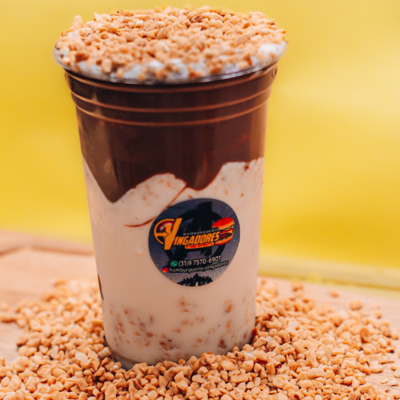 Nosso Milk-shake e feito com base americana, um creme neutro muito delicioso e cremoso, Com uma porçao generosa de amendoim e 4 paçocas! Lembrando colocamos leite em todos milkshakes.