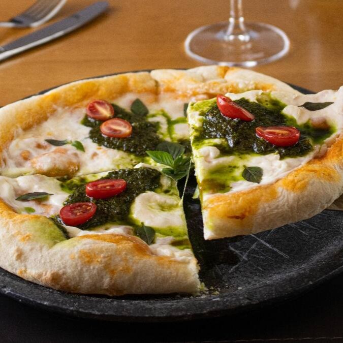 Passata italiana, burrata e pesto de manjericão, fermentação natural.