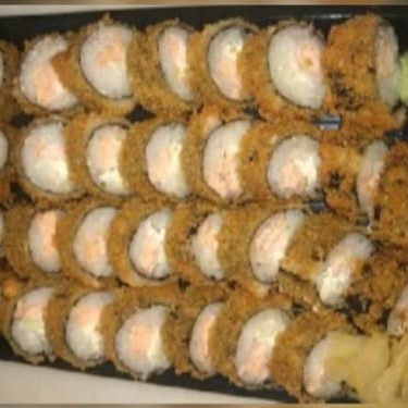 Enrolado de arroz por dentro e alga por fora, recheado de salmão, cream cheese e cebolinha empanado e frito. (Acompanha 2 sache de shoyu 2 sache de tare e 2 par de hashi)