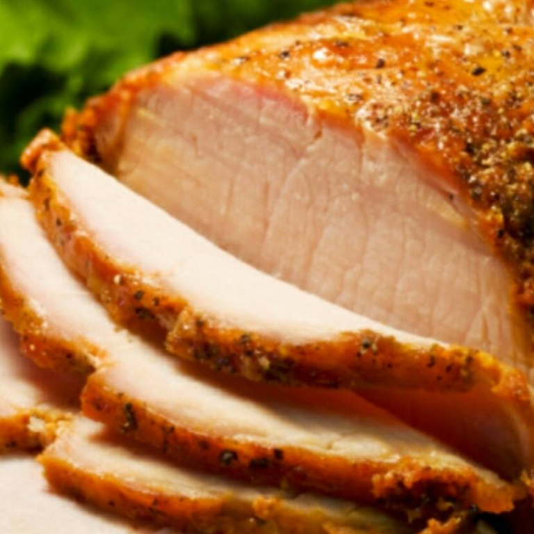 Lombo suíno selecionado, temperado com ervas e especiarias e assado até o ponto perfeito.