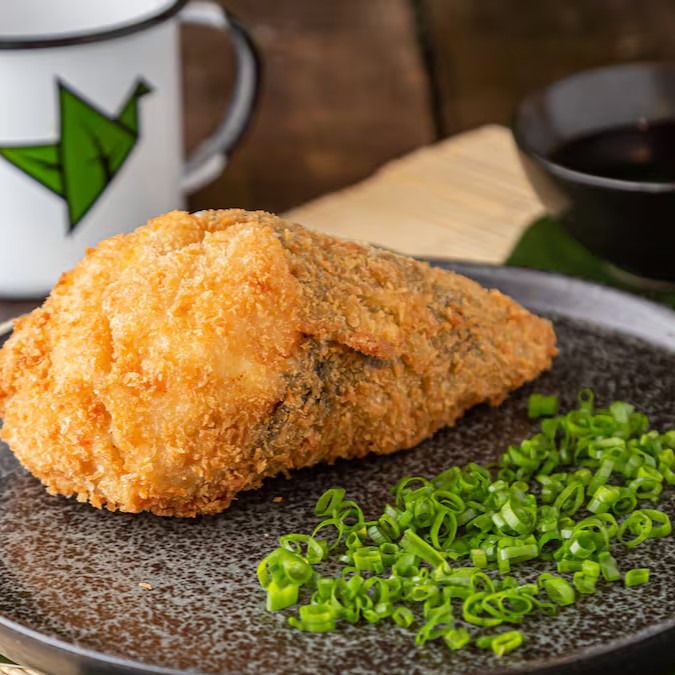 Temaki hot - Salmão, cream cheese, arroz enrolado na alga e frito