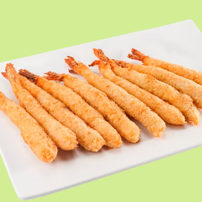 Deliciosos camarões crocantes empanados e temperados. Imagens meramente ilustrativas.