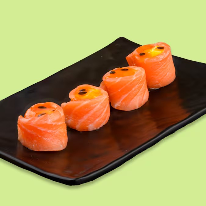Enrolado de salmão (8 unidades). Escolha a montagem nos complementos. Imagens meramente ilustrativas.