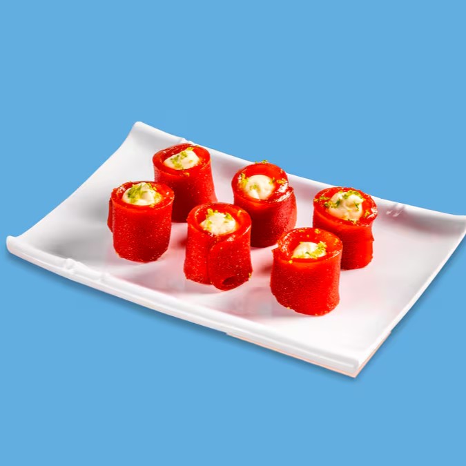 Rolinho de camarão cremoso. Acompanha 1 unidade. Imagens meramente ilustrativas.