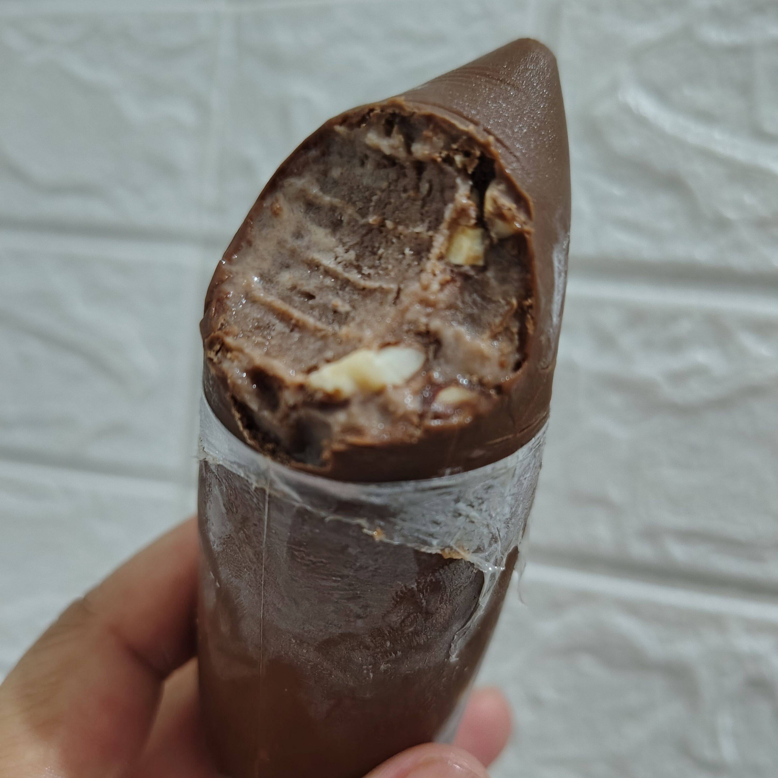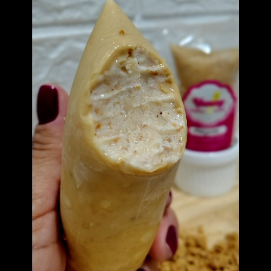 Cremoso geladinho de paçoca, coberto com delicioso creme de amendoim com pedaços.