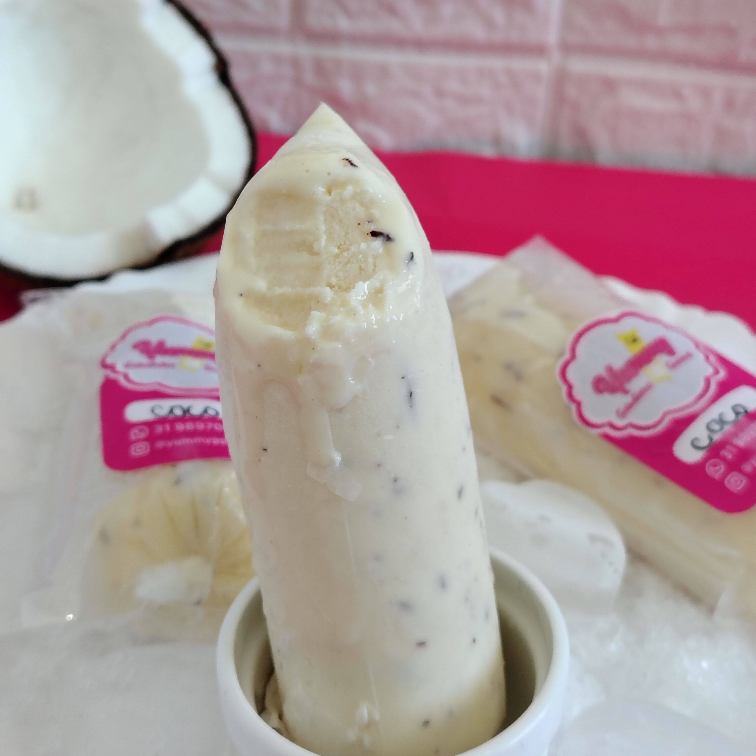 Este geladinho é um delicioso clássico da infância. Ele é cremoso e macio, feito com coco fresco. O sabor é extraordinario.