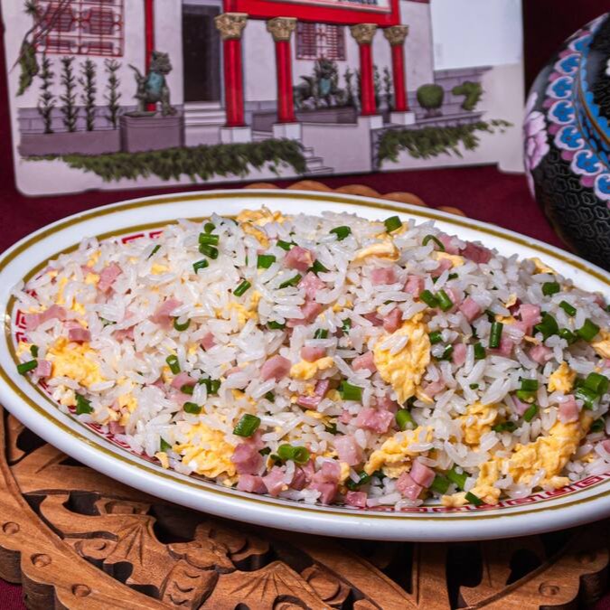Arroz com presunto, ovo e cebolinha