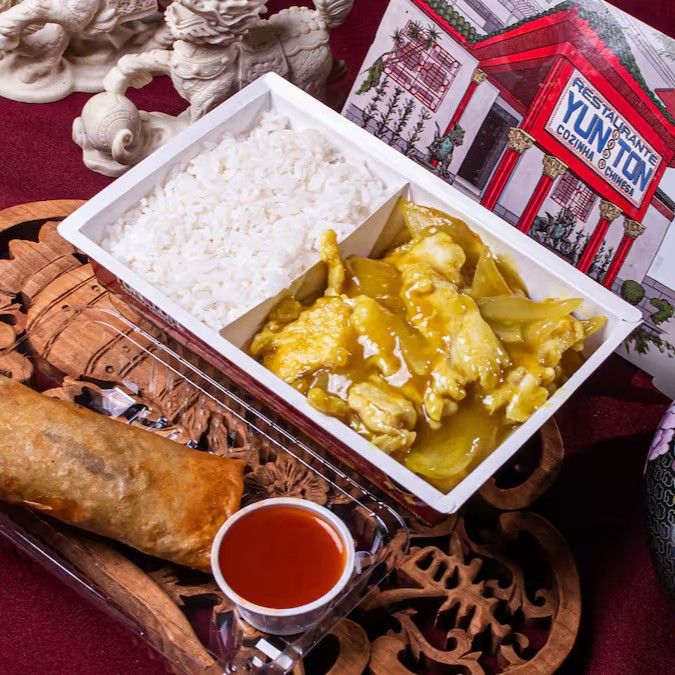 Escolha seu arroz, a proteína e ganhe um rolinho primavera com molho agridoce - Aprox 500g