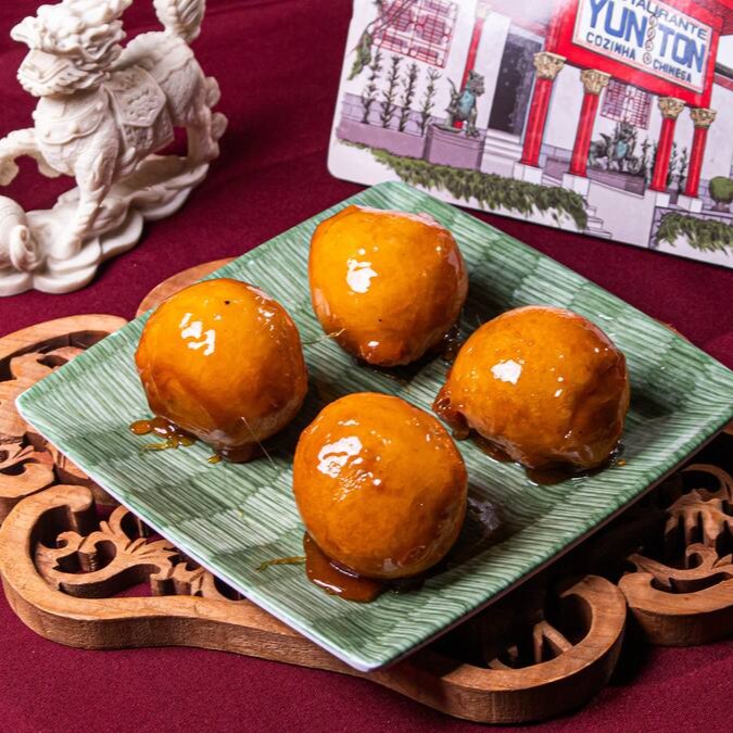 9 trouxinhas recheadas de lombo moído, cebolinha e gengibre.
